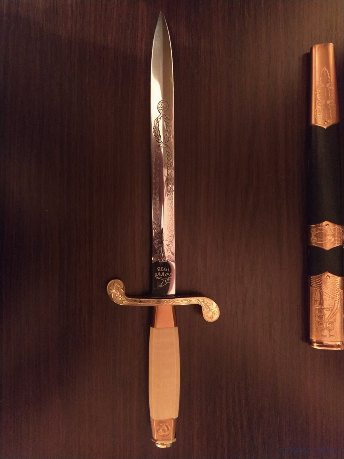 Уважаемые Господа ! Предлагают морской кортик Булат 1993, с украшенным клинком. Герб СССР присутствует. Номер П-627. Это сувенир или реально возможный вариант?