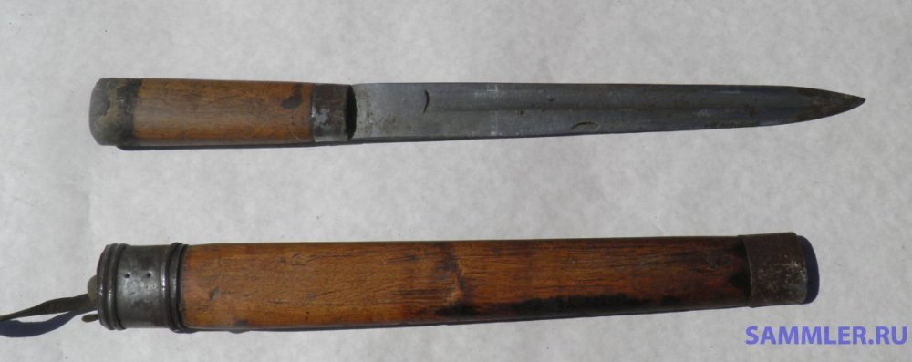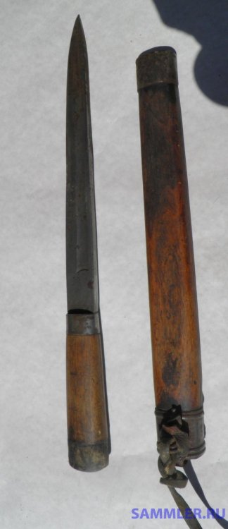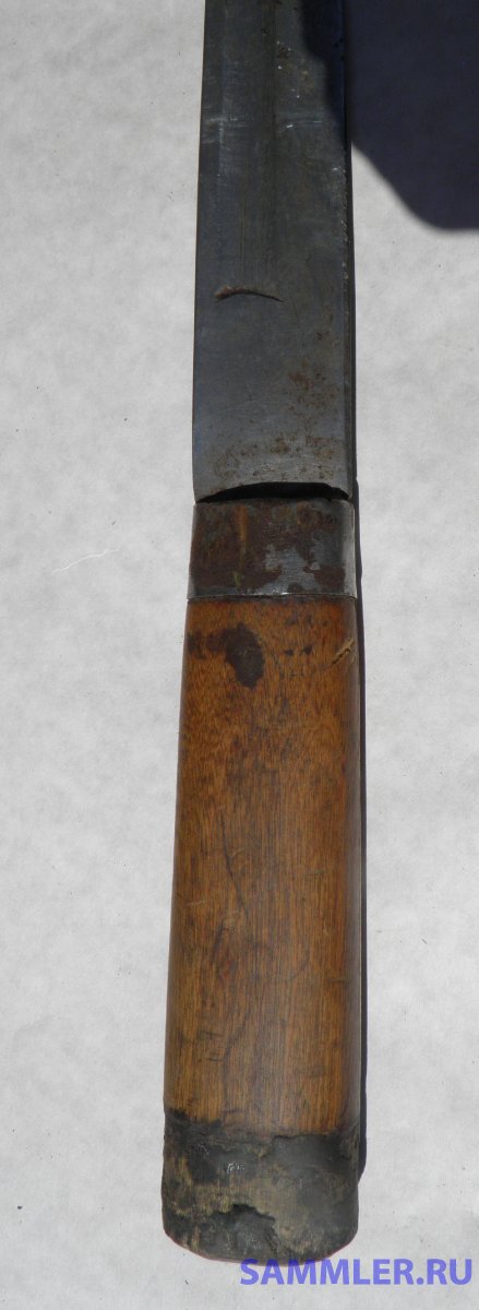 Фотографии какие есть выложил, толщина лезвия у рукоятки 8,5 мм. Длина лезвия от рукоятки где-то 40 см. Это переделка из чего-то другого или это изначально был какой-то нож-кинжал?