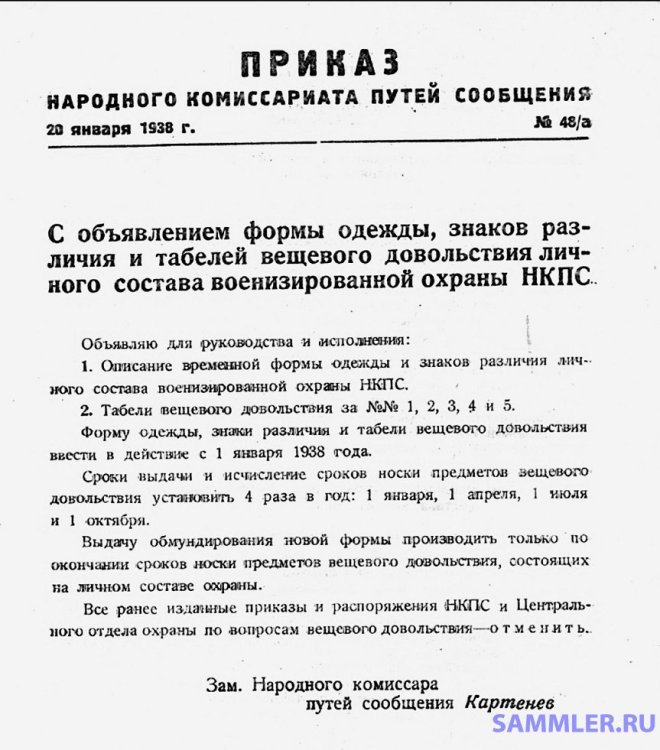 Бытует мнение среди интересующихся, что ВОХР НКПС получил знаки различия железнодорожников и форменную одежду в целом как у работников НКПС, только в 1938 году на основе приказа № 48/а. ИМХО, это не так, т. к. существуют (пока не пущенные в оборот) документы датированные 1932 годом, в которых упоминается о переходе ВОХР на форму одежды и знаки различия как у остальных работников НКПС (обр.1932 г.).