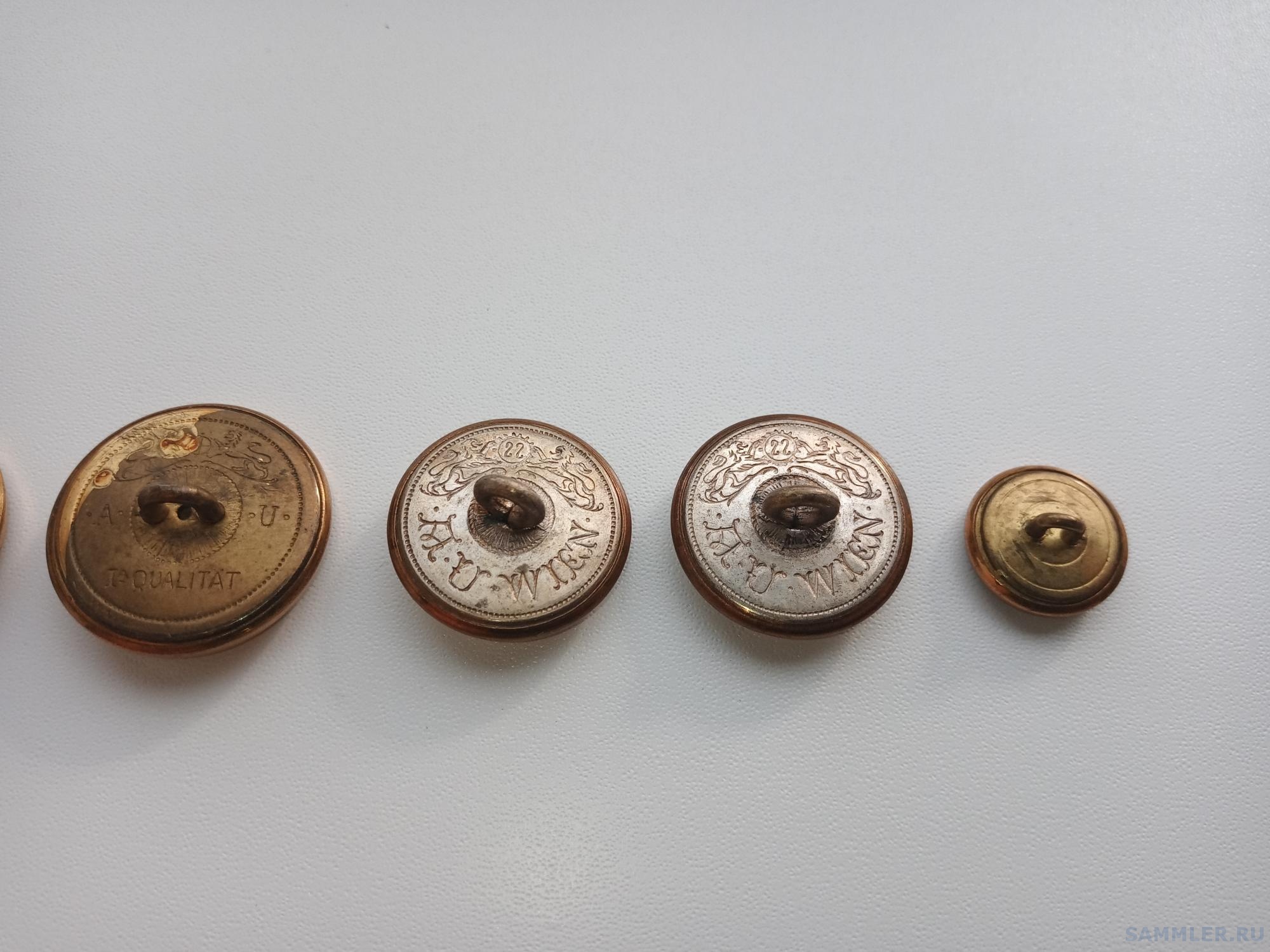 Добрый вечер! Спасибо за ответы! Продавались они в лоте с разными элементами военной фурнитуры и какими-то элементами видимо гражданских украшений. Чуть позже выставлю. По креплению, честно, сам задаюсь вопросом. Так как смотрел фотографии разной военной фурнитуры А-В, у многих усов не видел... В соседнем лоте продавались вот такие пуговицы, как я понимаю на полевую форму?