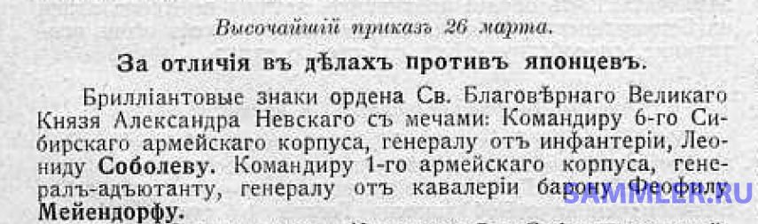 visantiec Опубликовано Понедельник в 16:30 Поделиться Опубликовано Понедельник в 16:30 Исходя из приведенной таблицы бриллиантовые знаки ордена Св. Александра Невского с мечами были вручены один раз, хотя в "Летописи войны с Японией" представлена другая информация - см. скан. Данная информация подтверждается и "Списками генералам по старшинству..." за 1906 год. Ссылка на комментарий Поделиться на другие сайты Поделиться